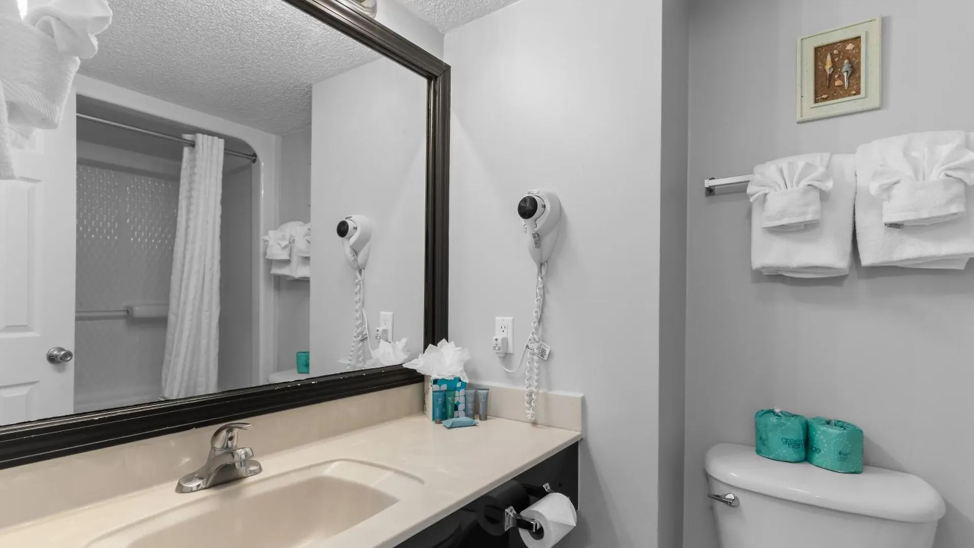 The hotel also features a heated swimming pool as well as a lazy river, barbecue grills, and a golf course. The Grande Shores Myrtle Beach includes a 24-hour business centre equipped with banquet and meeting facilities, and a xerox.